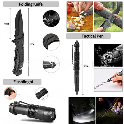 आउटडोर में जीवित रहने के लिए बहुआयामी उच्च गुणवत्ता वाले आपातकालीन आवश्यक उपकरण शामिल हैं।